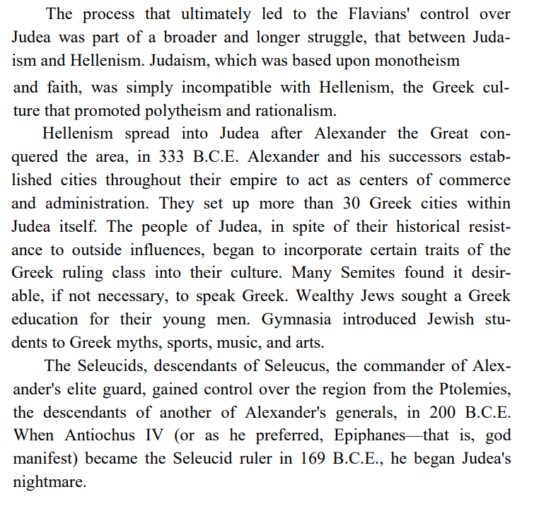 [here we circle back in the text to the explanation of Hellenism etc leading up to the campaign of 66 CE]