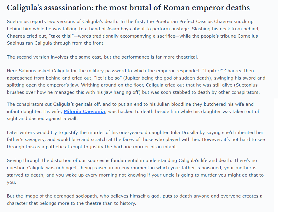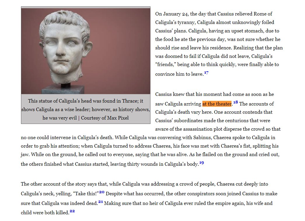 Caligula, also assassinated in the theater. “A character that belongs more to theater than history”