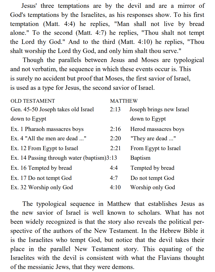 Here the author is belaboring the point of intertextuality in order to introduce the concept, but what I want to draw attention to is the swap between Satan and the children of Israel. This is the heart of the entire Roman project -