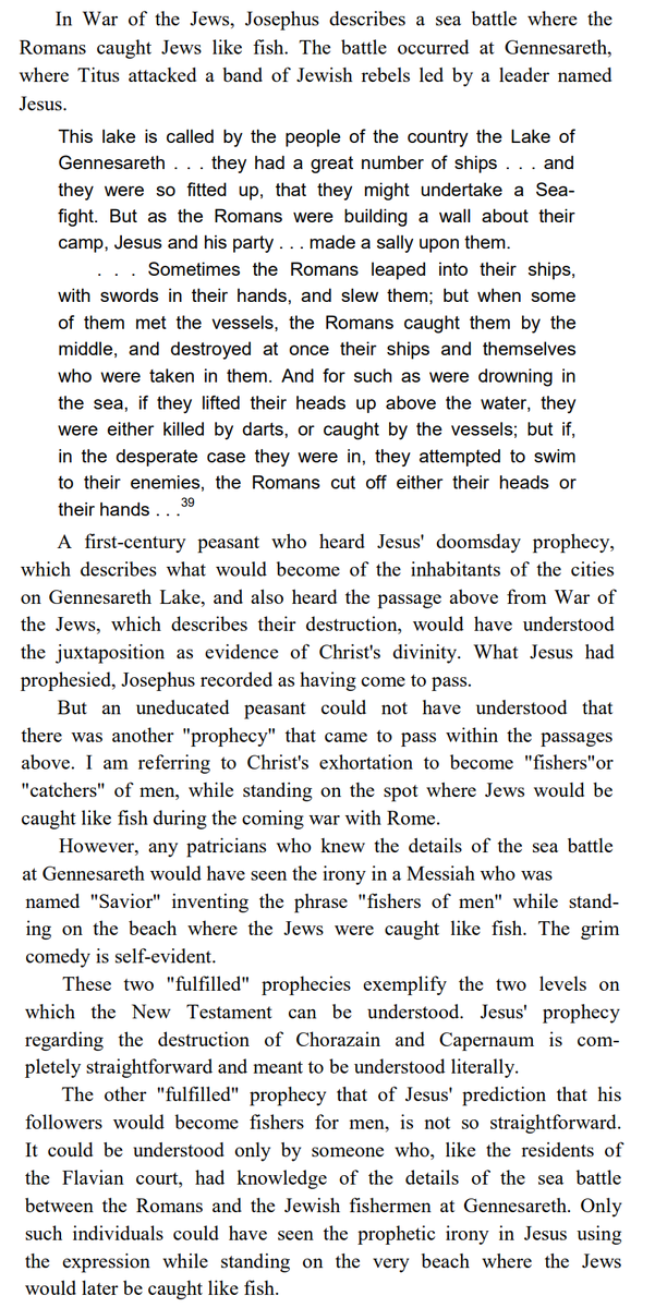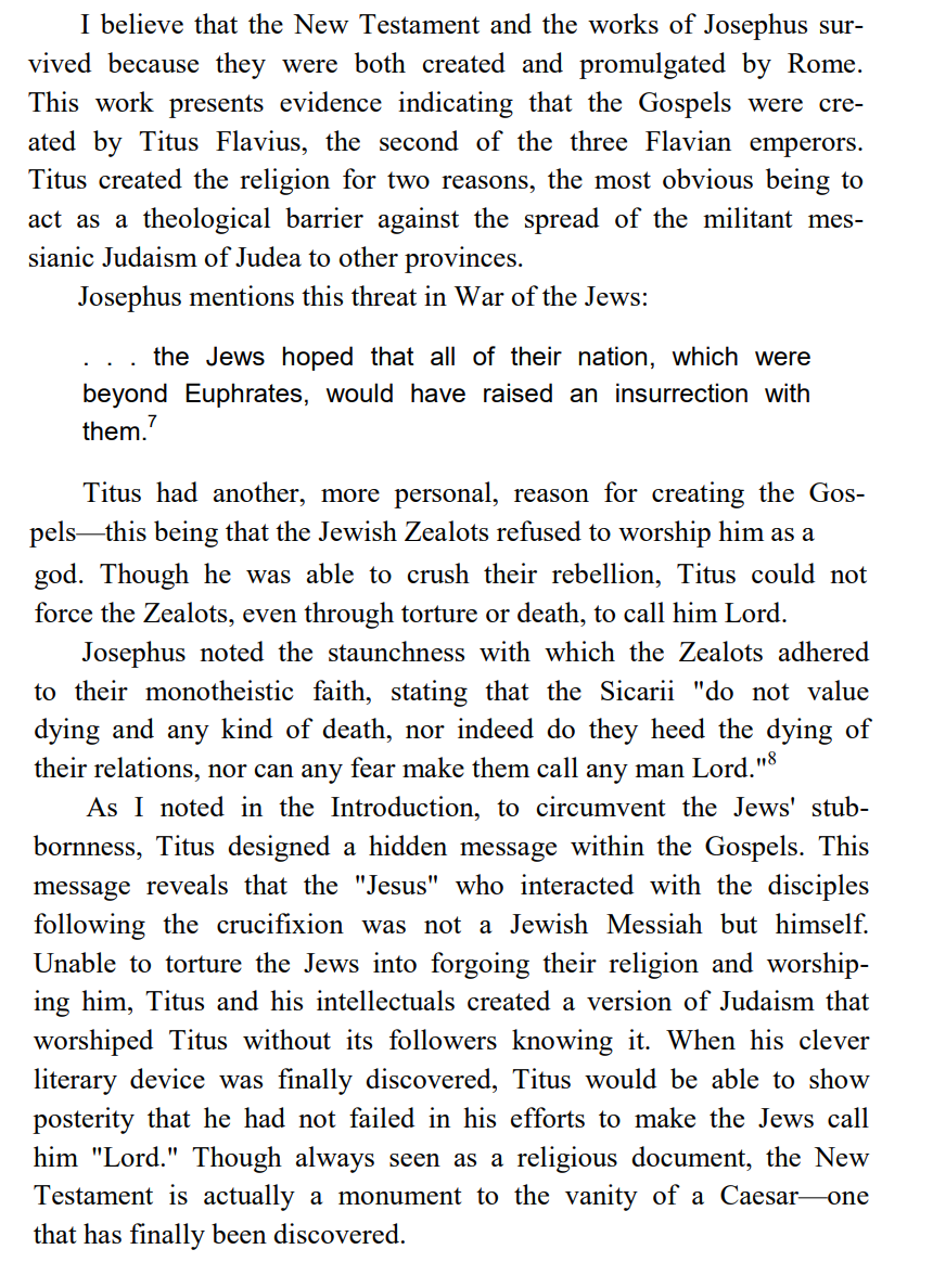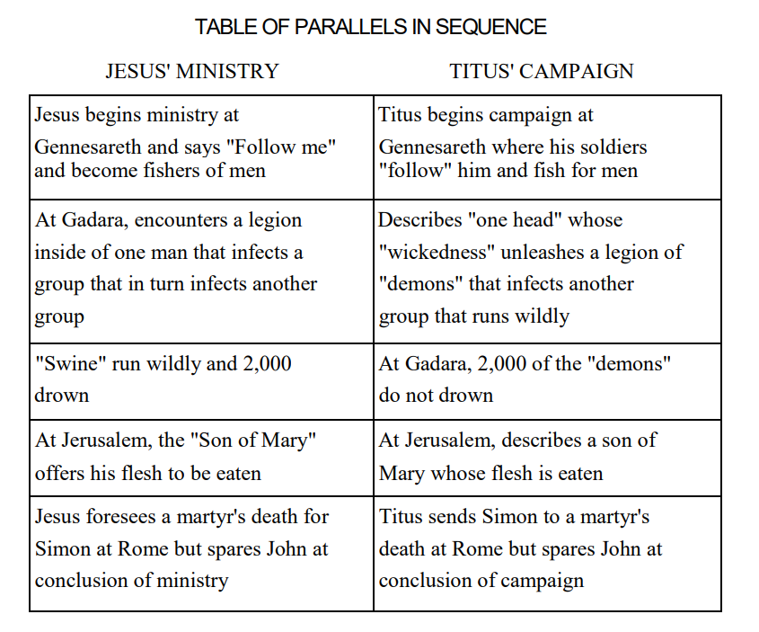 Even if we take a less absolute position than the author, a few things I think are clear. The historical works of Josephus have a strong explanatory relationship to the early gospels. They document the campaign of Vespasian and Titus against the Jews of 66 CE.
