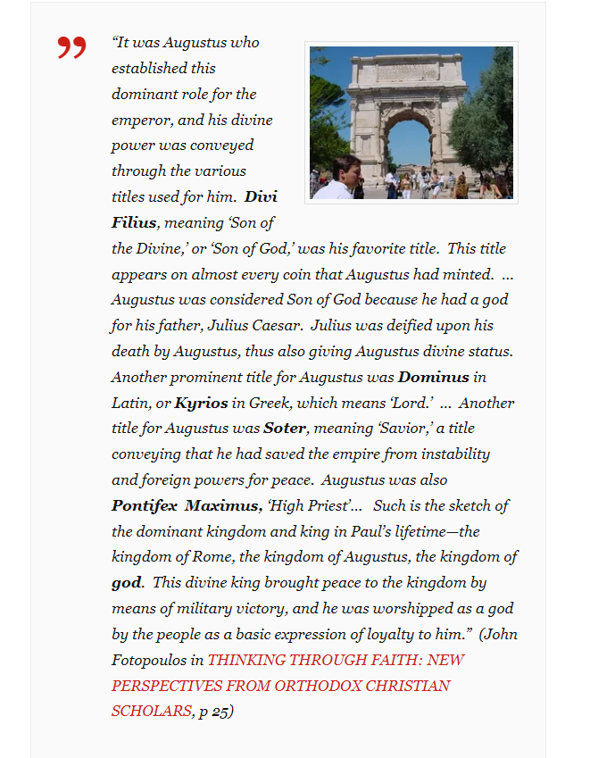 The imperial cult, the worship of the Caesar, is really at the heart of all of this. And this is why I have bothered with a great deal of context and introduction before getting to the main thesis of the source, a thesis which I by and large agree with and believe I can support with additional context not included by the author himself.