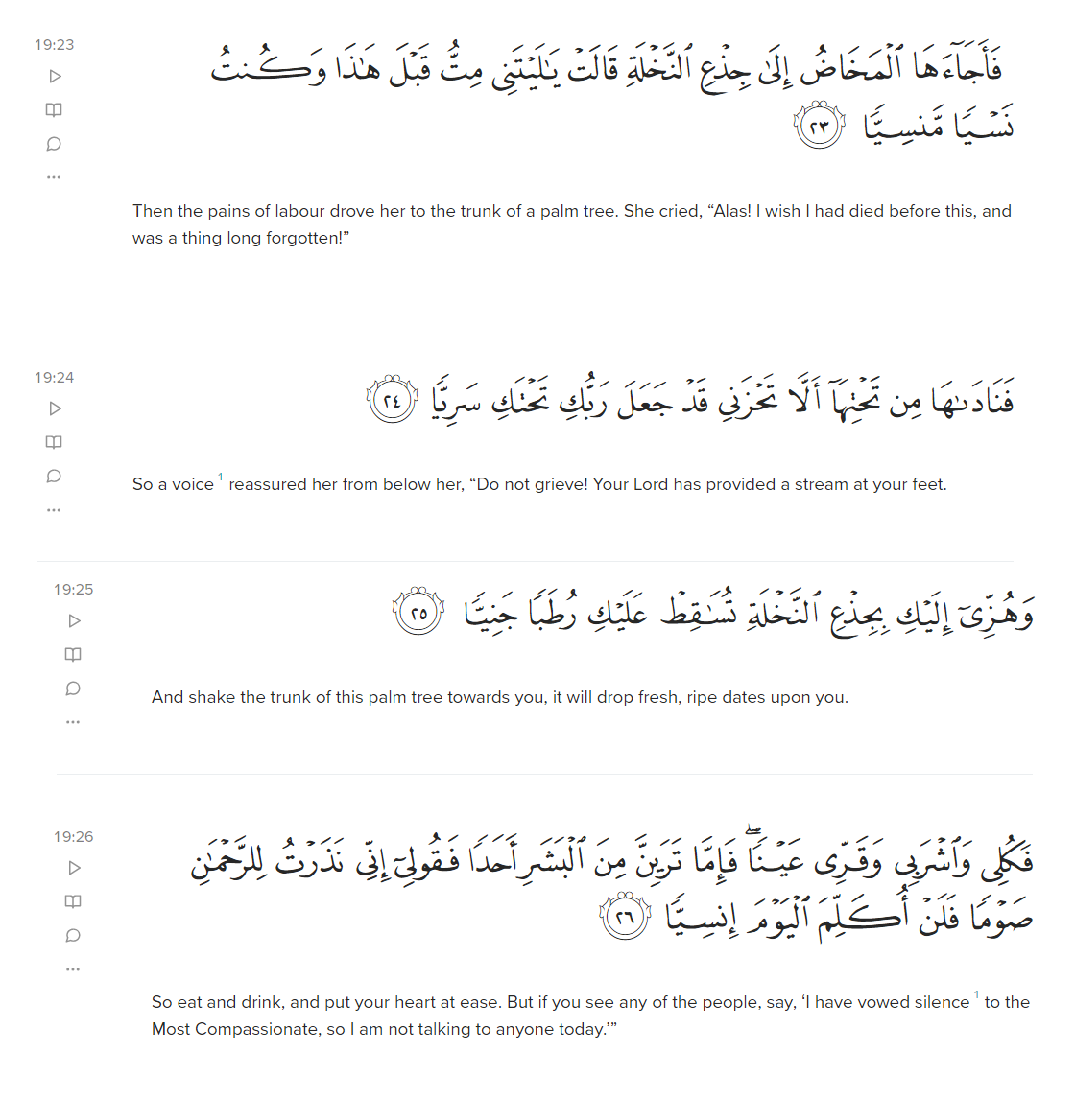 This occurs not just in one story, but two – the other being when she gave birth to prophet ‘Isa, alayhis salaam.