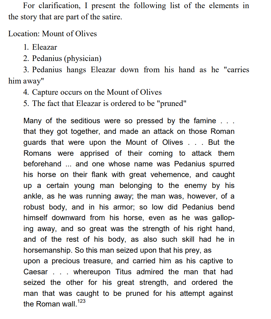What we are exploring with this source is a textual analysis of the gospels against the historical work ‘war of the Jews’ which documents the counterinsurgency campaign of Vespasian and Titus that ultimately led to a massive defeat and the destruction of the second temple. After examining this source, we will support this analysis with more historical context, and then work our way back to the global war on terror and then further work our way back to the main subject of this thread.