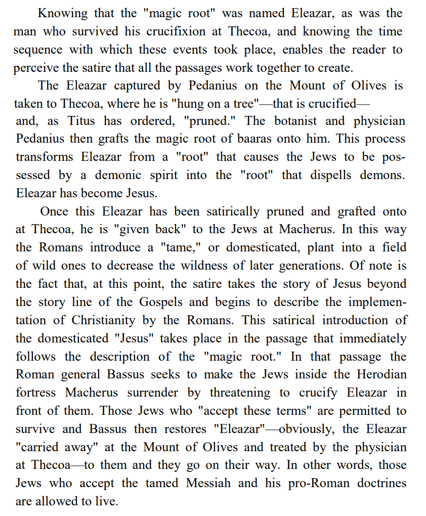 What should be clear however is that, in keeping with the “root and branch” symbolism analyzed inter-textually between the gospels and the war of the Jews, in keeping with the concept of pruning and then grafting a false Roman religion onto the “root” of monotheism, and in keeping with what I believe was a very long-term plan to test, refine, and ultimately adopt monotheism as the Roman state religion,