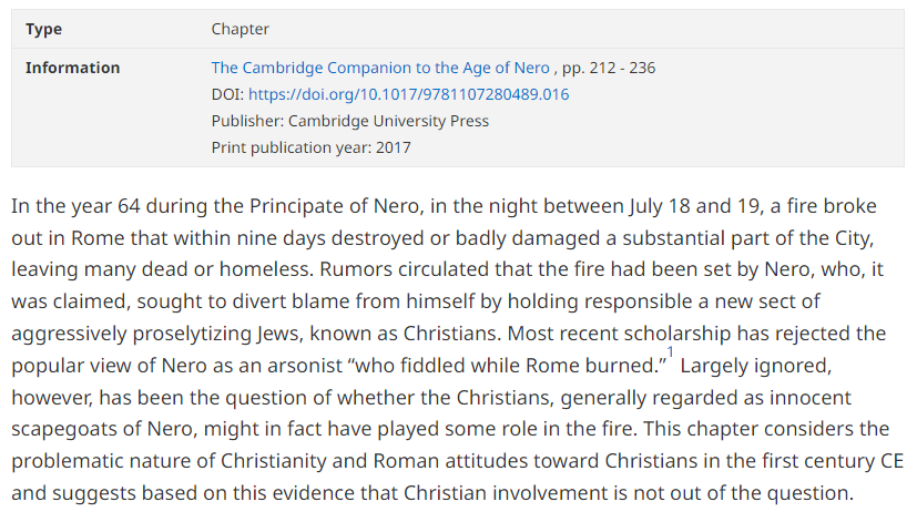 This also would belie Tacitus’ premise of the ‘convenient scapegoat’ rather than a targeted attack.