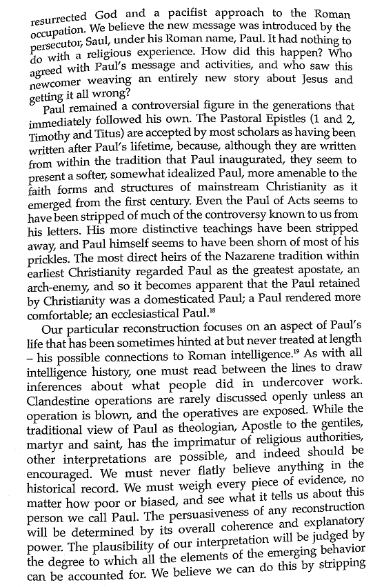 Paul was not an authentic disciple. In fact he was an ex-persecutor of the Christians on behalf of the Roman government, who then had a ‘miraculous’ change of heart and went on to try to “join” the Christians and inject beliefs that served the aims of the Roman empire.