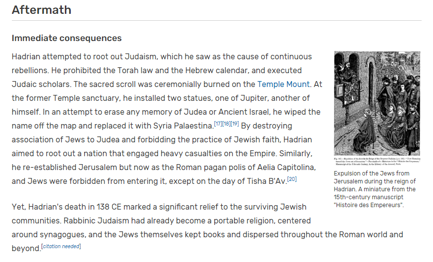 But – tragically, the outcome of this revolt was a massive genocide, complete expulsion from Judaea, and the further blaspheming of their holy land with pagan idols.