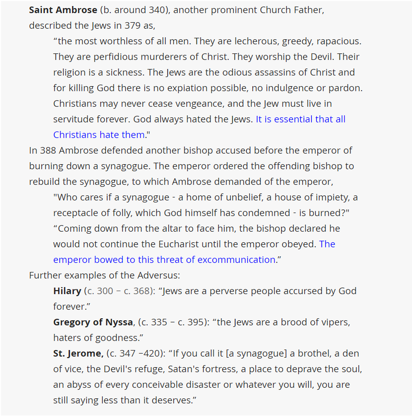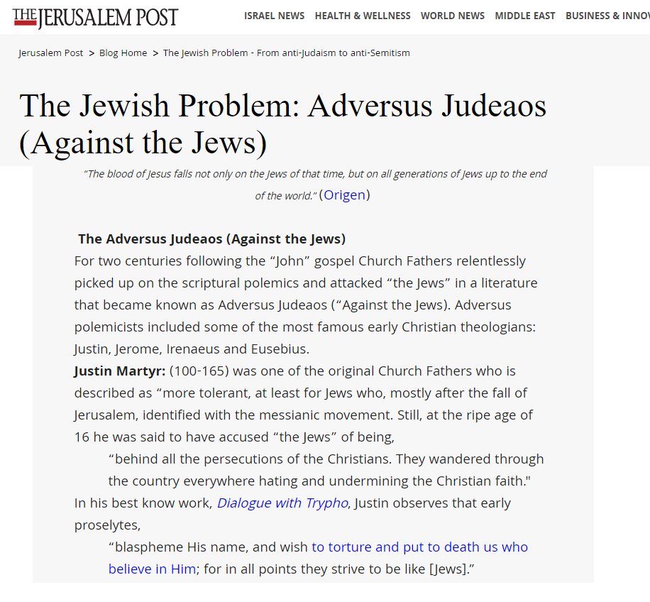And for what may be the only time in this body of work, we will now turn to the Jerusalem Post’s analysis of the anti Judaism of the early “Church fathers”: