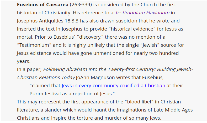 Note that one of the main historical sources is Eusebius, I will address the role of Eusebius and other “Church fathers” in this entire operation and then we are mostly finished with this subject.