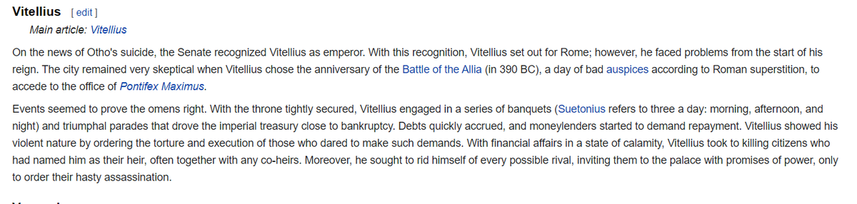 Vitellius, who undertook a series of purges only to eventually be killed and captured by Vespasian himself.