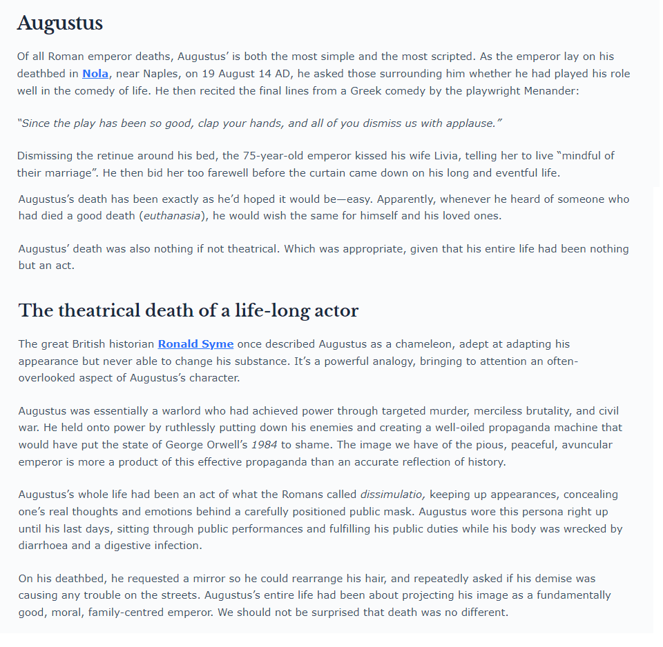 The example of Augustus is almost too on the nose: