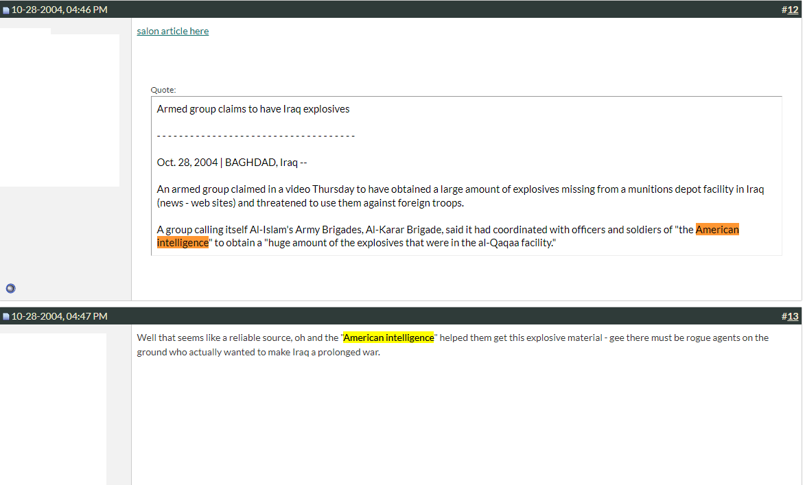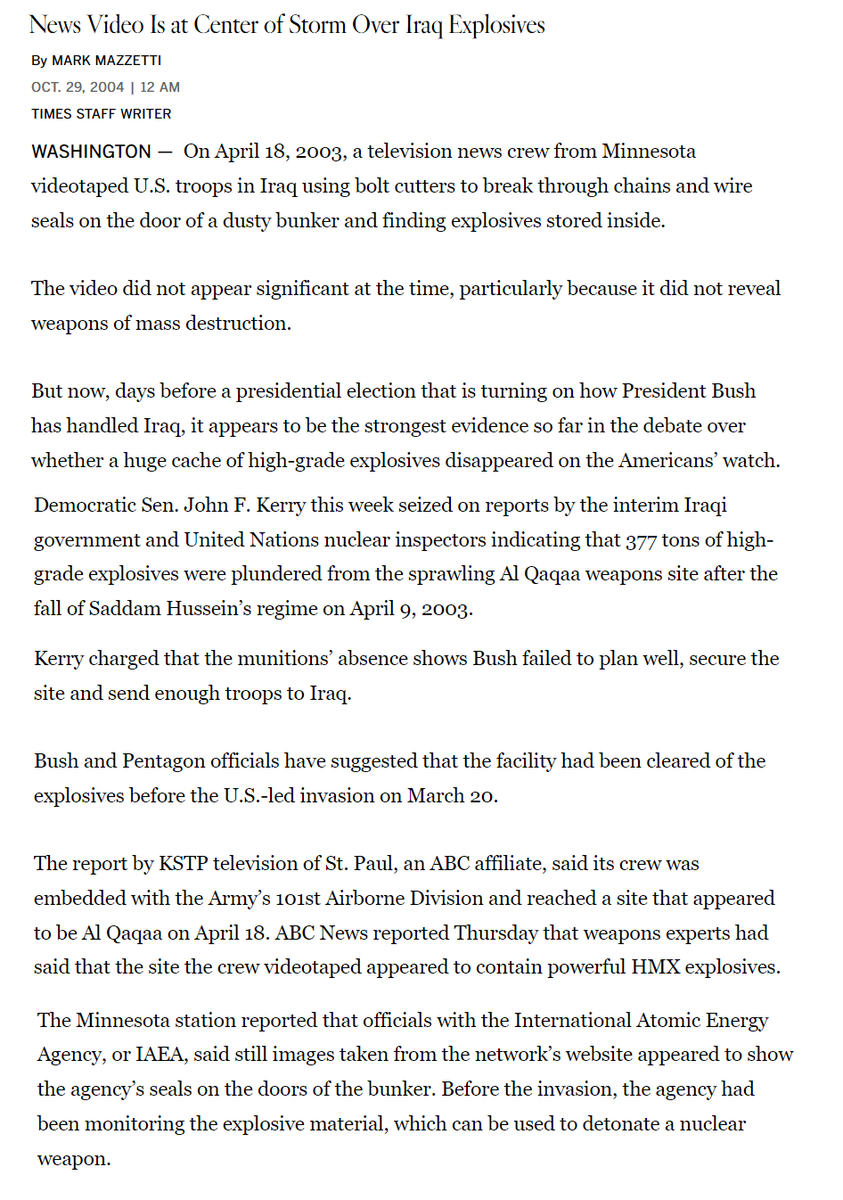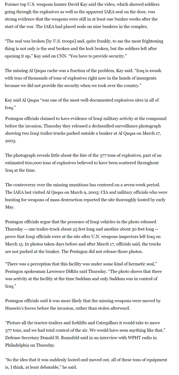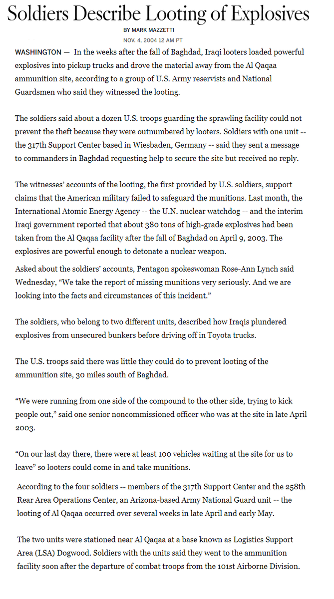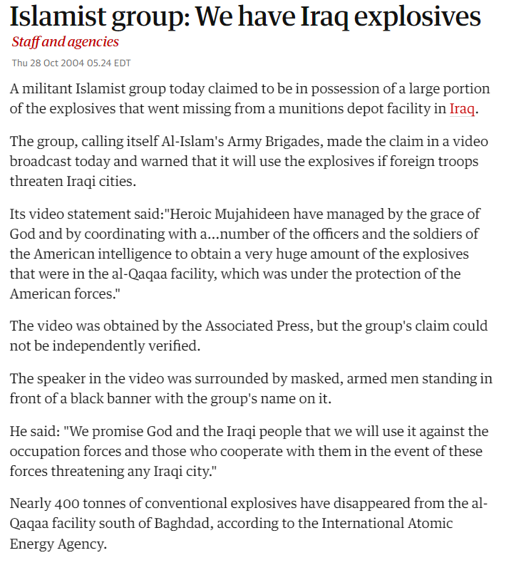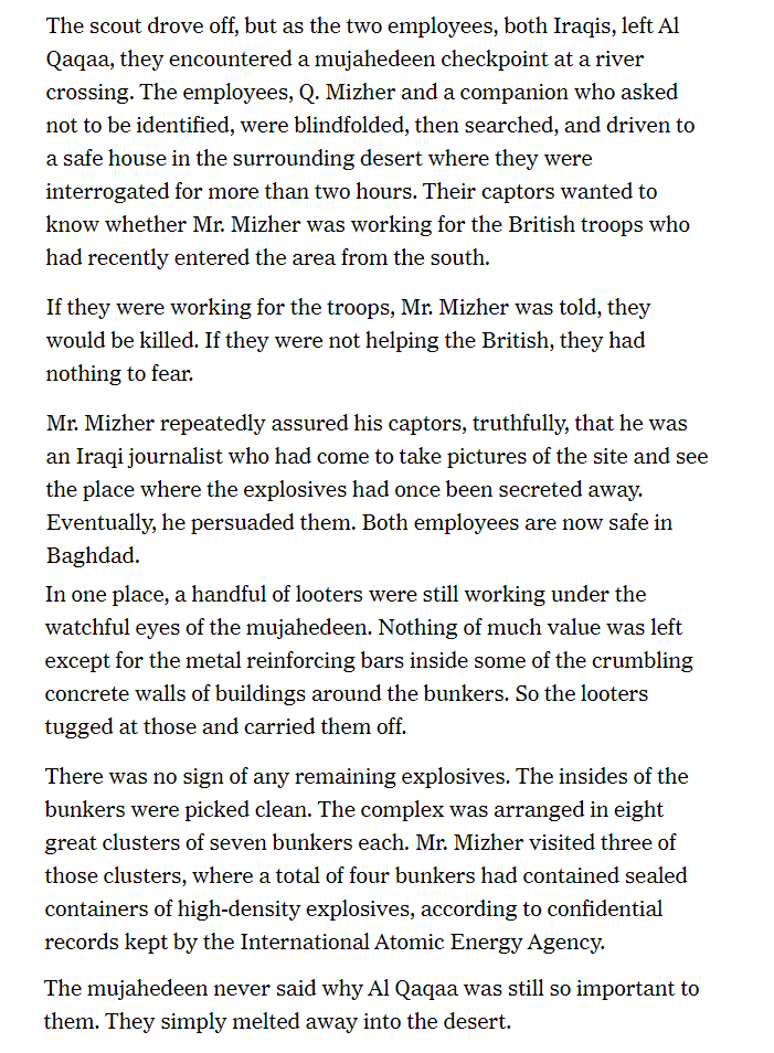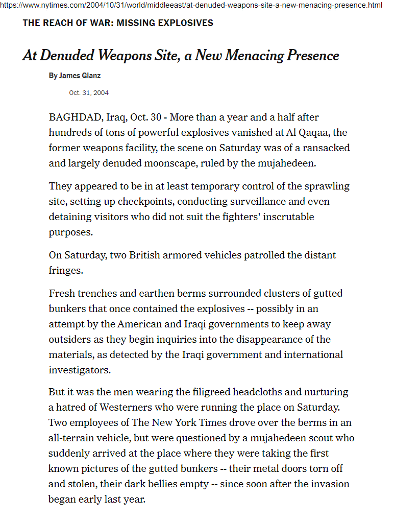 The last paragraph is another reminder of how hard they are trying to surface this absurdity to their credulous readers - “the mujaheddin never said why Al Qaqaa was still so important to them”. What were they cooking with this one? I truly can't figure it out.