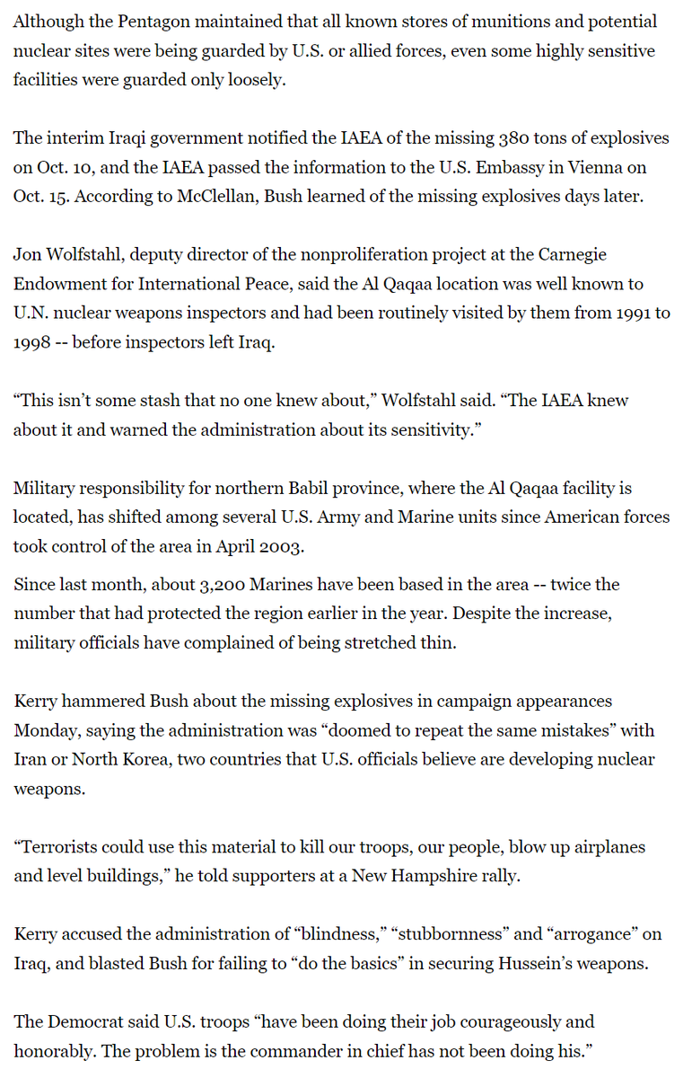 This quote specializes the Al Qaqaa site right after the “military” makes a strong argument against this. this undermines the credibility of the pro-IAEA standpoint. And then finally, we see the same narrative from Kerry -